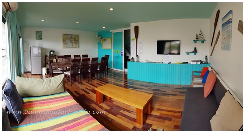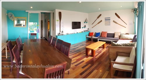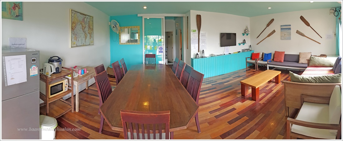 ชั้นสอง มีห้องนั่งเล่นซึ่งเป็นห้องรับประทานอาหารด้วย ติดแอร์ มีทีวี เป็น Smart TV พร้อม Netflix มี Wifi อินเตอร์เน็ตความเร็วสูง มีโซฟานั่งเล่น โต๊ะรับประทานอาหารสำหรับ 10 ที่นั่ง มีตู้เย็น พร้อมอุปกรณ์ครัวครบ มีเตาบาร์บีคิวตัวใหญ่แบบใช้แก๊ส และมีประตูเปิดไประเบียงซึ่งระเบียงนี้จะเชื่อมต่อเนื่องกันตลอดแนวตึกค่ะ เดินไปสุดทางเดินระเบียง จะมีบันไดลงไปสระว่ายน้ำของโครงการด้านล่างและเดินลงไปชายหาดได้ค่ะ ภาพชั้นสอง - ห้องนั่งเล่น