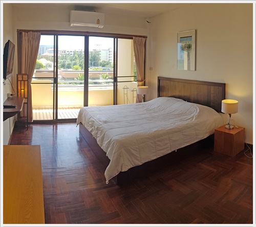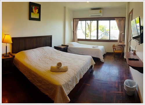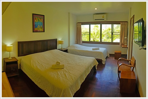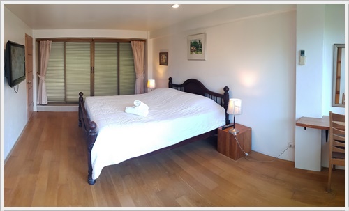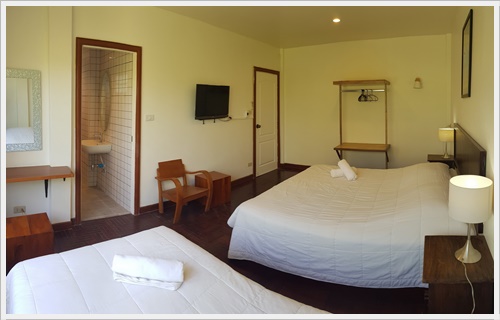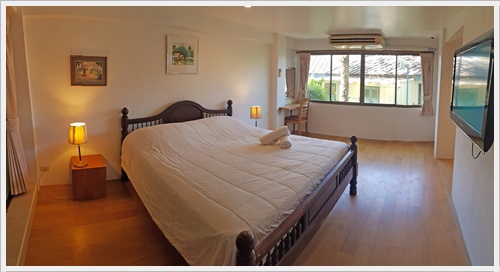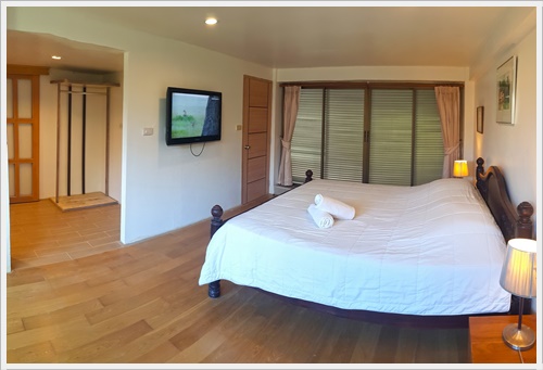 ชั้นสาม ชั้นนี้มีห้องนอน 3 ห้องค่ะ เป็นห้องนอนที่มีห้องน้ำในตัว 1 ห้อง / ห้องนอนที่มีเตียงใหญ่พิเศษ 1 ห้อง และห้องนอนที่มีระเบียงเห็นวิวทะเล 1 ห้อง และมีห้องน้ำเพิ่มอีก 1 ห้องค่ะ ห้องนอน 3 - มีห้องน้ำในตัว เป็นเตียงขนาด 6 ฟุต + เตียง 3.5 ฟุต (นอนได้ 3 คน) ติดแอร์ มีทีวี